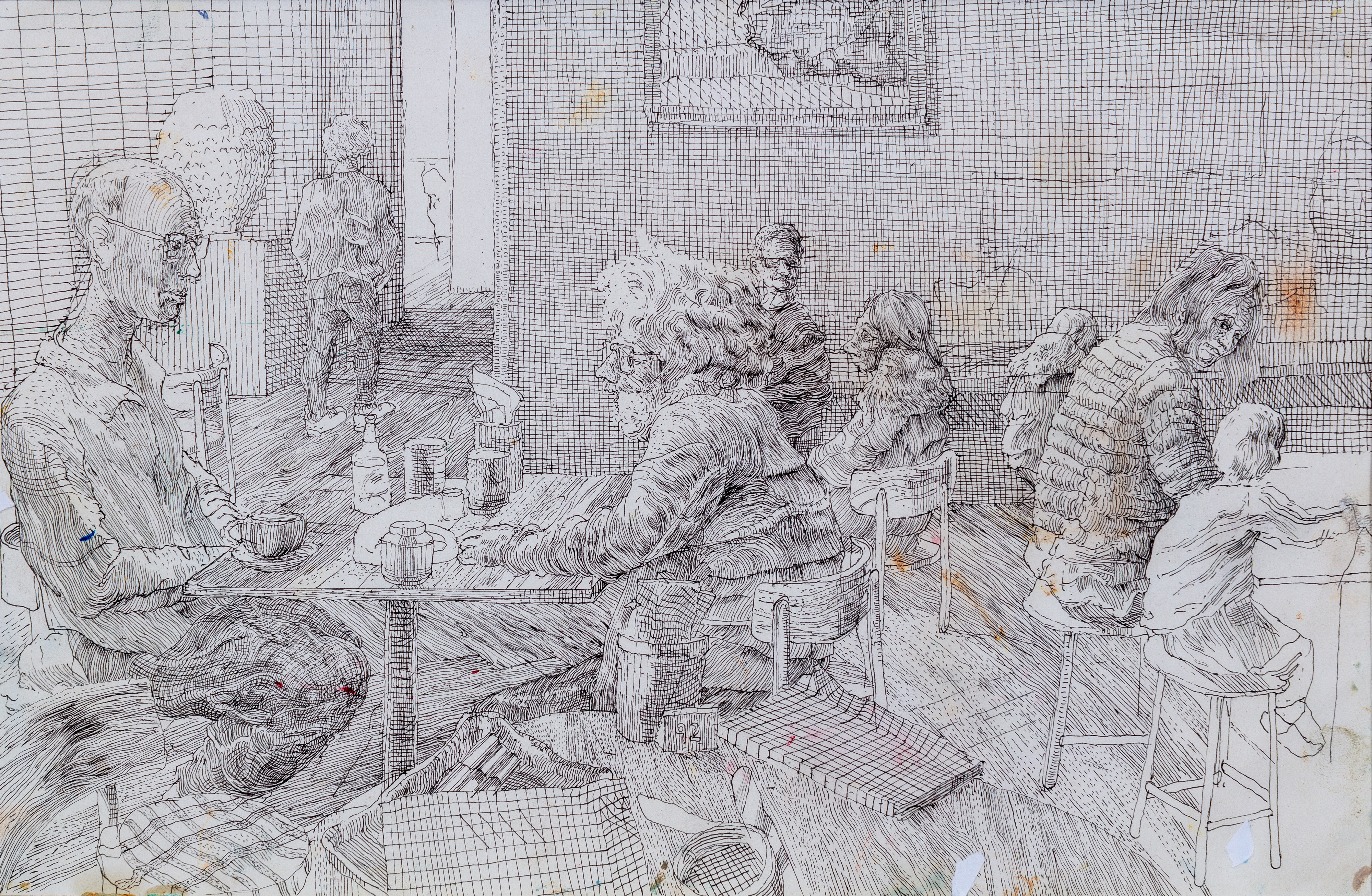 The scene is entirely imagined, and was drawn without life models. But references motifs and